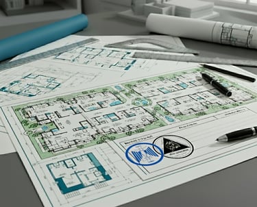 فحص وتدقيق ملف التراخيص والموقف الكامل للمشاريع ورسم واعتمادها للحصول على الموافقات النهائية.